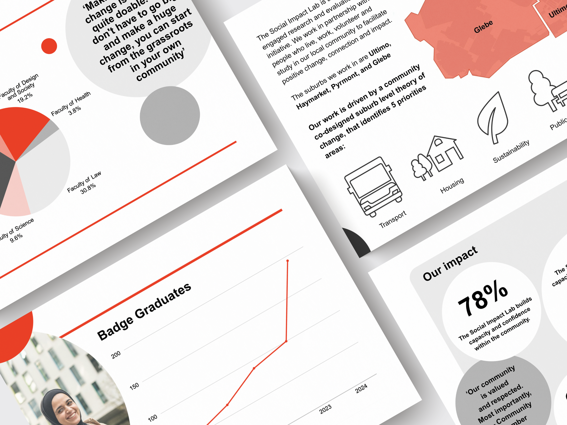 The project focused on designing flexible visual systems for communicating social impact, creating a practical and accessible toolkit that could support ongoing communication across the Centre while remaining fully aligned with the UTS brand.