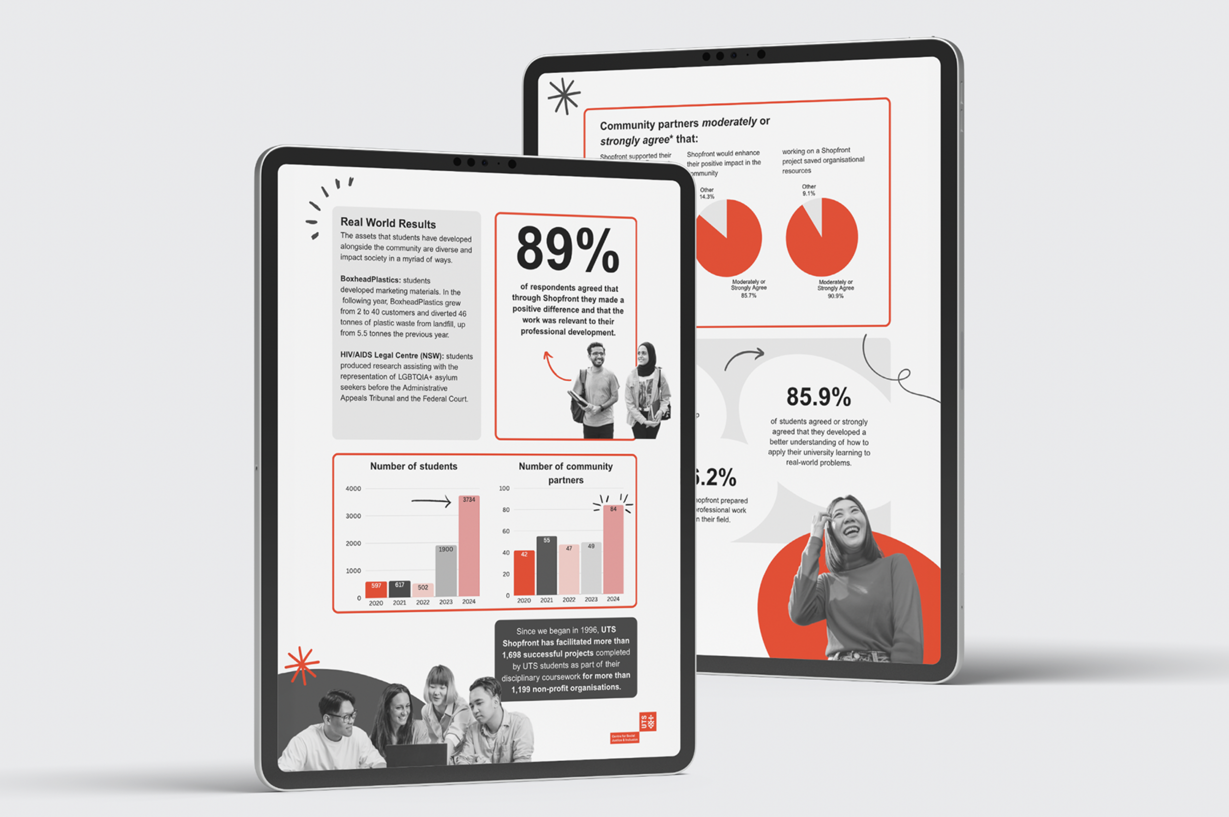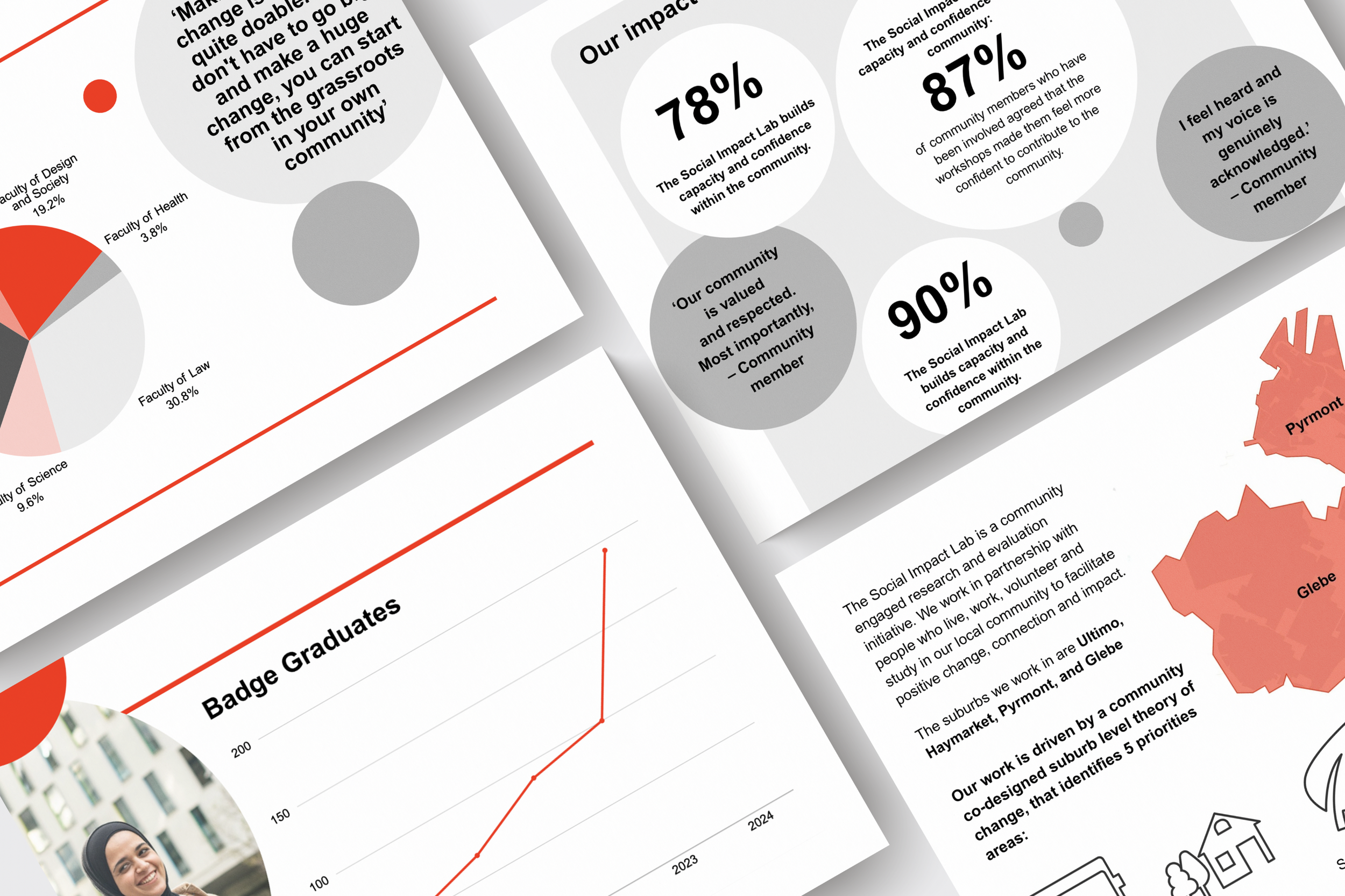 The project focused on designing flexible visual systems for communicating social impact, creating a practical and accessible toolkit that could support ongoing communication across the Centre while remaining fully aligned with the UTS brand.